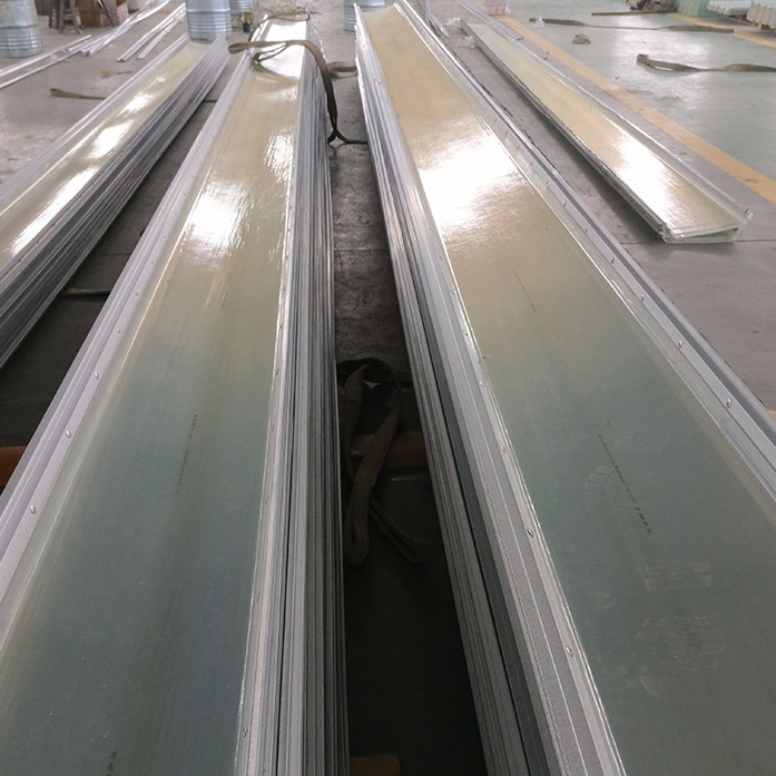 采光瓦要由高性能上膜、強化聚脂和玻璃纖維組成,其中上膜要起到很好的抗紫外線抗靜電的作用,抗紫外線是為了保護FRP采光板的聚酯不發黃老化,過早失透光特性
